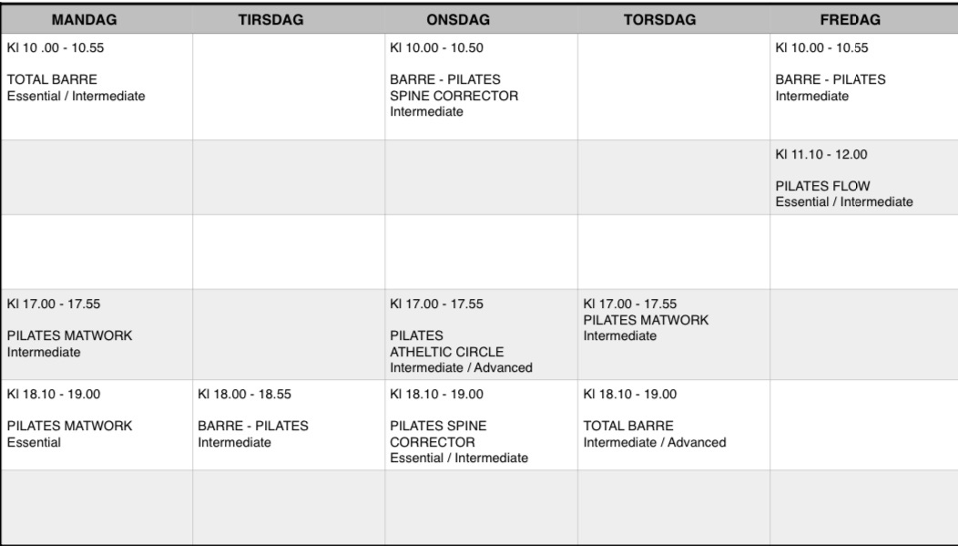 Ny timeplan fra 7. Oktober -19 september 30, 2019oktober 2, 2019 av STUDIO PILATES - Bodil Pettersen online booking.